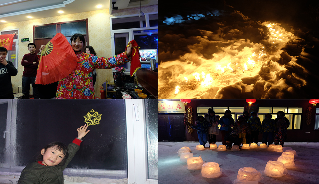 雪地篝火、东北秧歌;剪窗花,写对联,包饺子,放鞭炮,睡大炕......