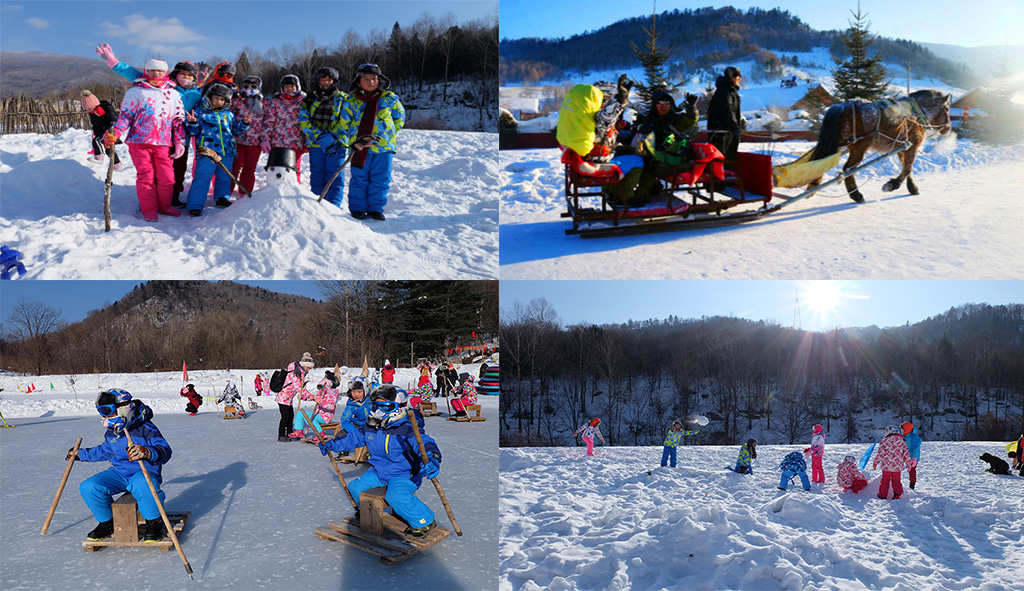 欢乐滑梯、抽冰尜,坐马爬犁、打雪仗、雪地足球......